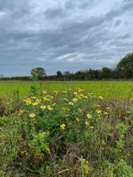 The refreshment stop was at a marina, where Ian manoeuvred his large coach around a small car park with apparent ease, something most members wouldn’t have attempted in their own car. He then dropped us off on a narrow country lane from where we made our way over a swing bridge and down to the canal bank. The bridge opened soon afterwards to allow a narrowboat to pass through (see video). We then walked along the canal before reaching muddy tracks, and open fields with a variety of different crops including kale, carrots, and cabbages as far as the eye could see. There were occasional showers, and sometimes a bit of blue sky during our 5 mile walk.
